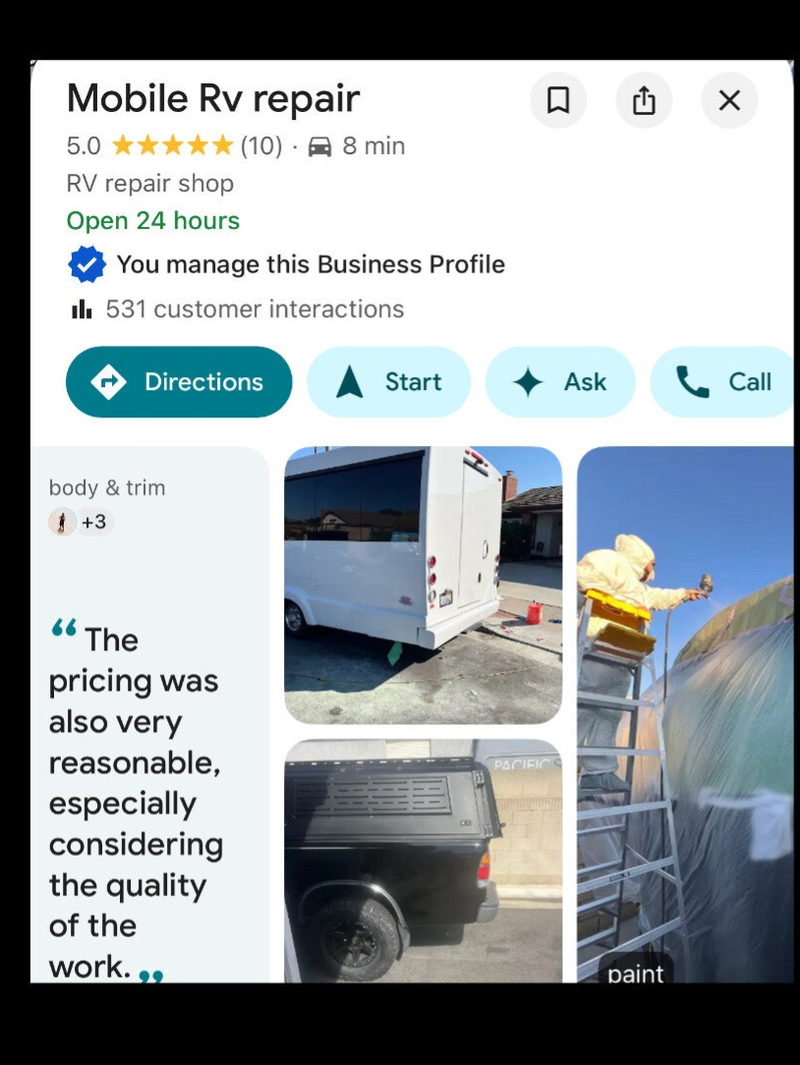 Mobile rv repair on google 5star⭐️⭐️⭐️⭐️⭐️